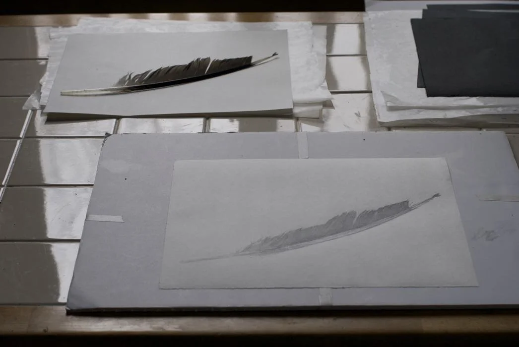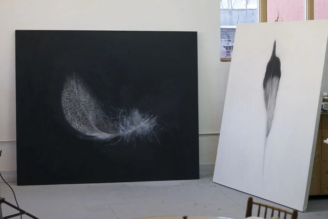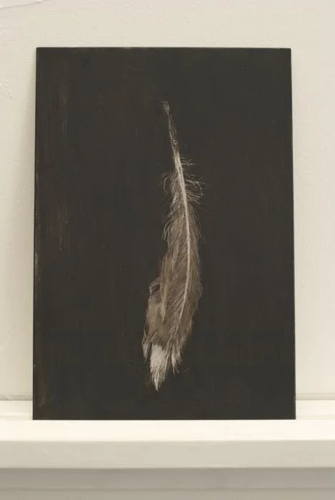 Living and working in NYC, this series of totemic paintings and drawings began of particular feathers, each for a particular purpose: my painting, touch, gratitude, looking after someone or something. Some work together in groups—an address to the mysterious, a spell for the artist in a new city.